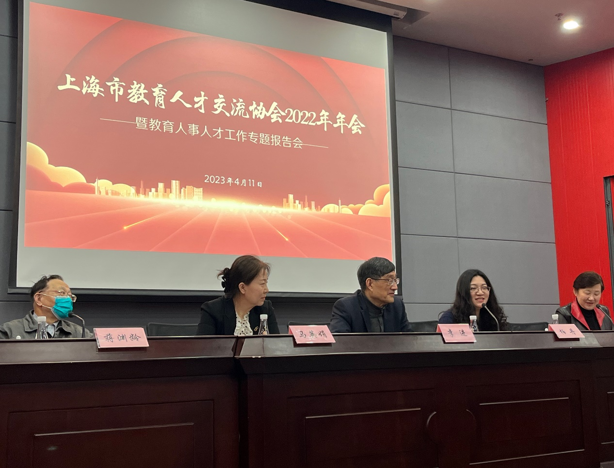 上海市市东实验学校副校长郑东刚、静安区教育人才交流中心主任史慧群、上海杉达学院人事处长吴建国和东华大学人事处副处长张兆春在年会上对教育人事人才工作进行交流。